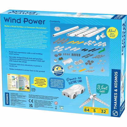 Real Energy Usage: Convert wind energy into electricity, light up an LED bulb, and charge a capacitor to power the included electric car.