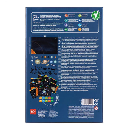 Smagus magnetukų žaidimas, kurio pagalba mažieji mokslininkai atras Saulės sistemą, mėnulio fazes, sezonus ir žvaigždynus. Žaidimas skatina vaikų kūrybingumą, pastabumą detalėms, dėmesio koncentravimą bei domėjimąsi juos supančia aplinka.