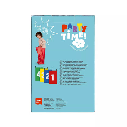 Spalvingi šokinėjimo maišai smagioms estafetėms. Žaidimo tikslas - įlipus į maišą pirmajam nušokuoti iki finišo linijos. Tai bent smagus žaidimas! Su šiuo rinkiniu vaikai patirs varžybų azartą, gerins socialinius įgūdžius bei koordinaciją ir balansą. Viduje yra 4 skirtingų spalvų, nuo 1 iki 4 sunumeruoti maišai su rankenomis, į kurias galima įsikibti ir laikyti maišą.