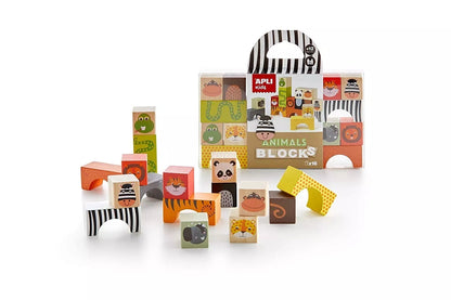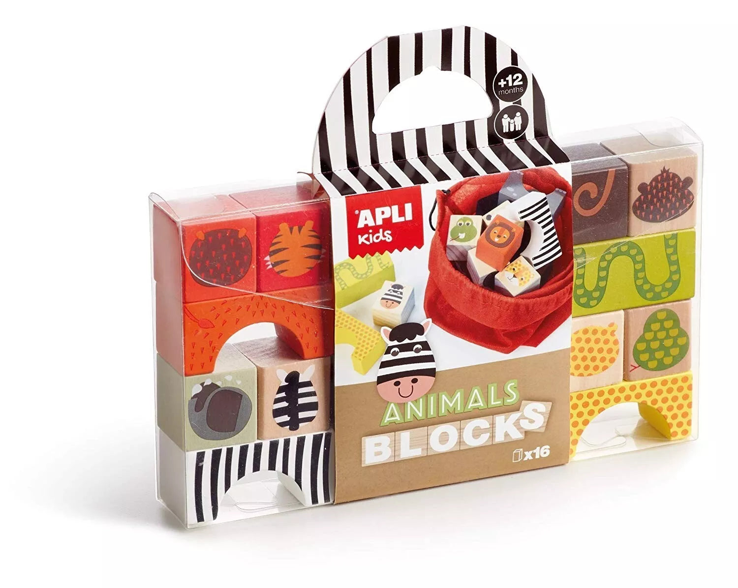 Aukštos kokybės medinių kaladėlių, vaizduojančių gyvūnus, rinkinys. Kaladėlių kampai užapvalinti, todėl atlaiko kritimus ir nesulūžta bei yra saugūs. Statyti kaladėles bus ne tik smagu, bet ir naudinga, mat šis žaidimas lavina vaiko koncentraciją, kūrybingumą bei ugdo motorinius įgūdžius. 16 skirtingų kaladėlių leis sukurti daug smagių ir netikėtų kombinacijų. Matmenys: 21,7 x 3,5 x 18 cm