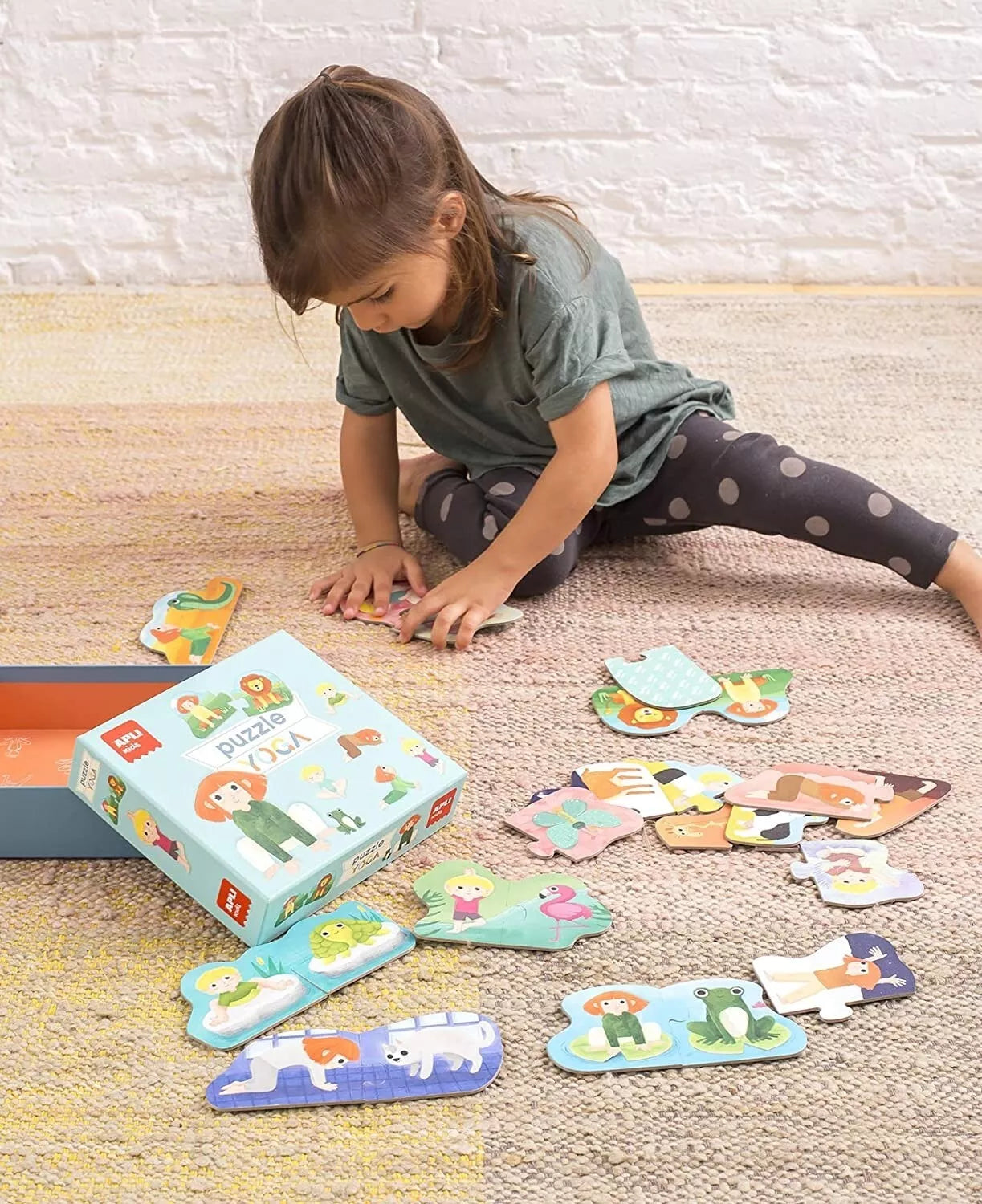 Kiekviena jogos poza sudaryta iš dviejų dėlionės dalių, dėžutėje rasite 12 skirtingų pozų.