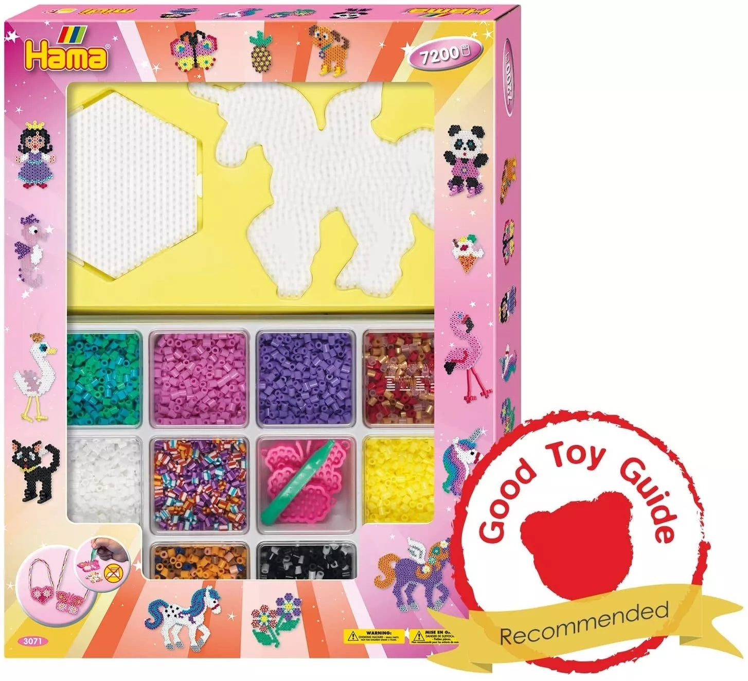 Šis rinkinys - tai nepaprasta 2019-ųjų metų HAMA karoliukų naujiena. Viduje prie jau įprastų karoliukų dėliojimo lentelių, rasite specialią lazdelę ir 2 karoliukų dėliojimo formeles, ant kurių sudėtų karoliukų nereikės lyginti lygintuvu. Šis užsiėmimas padeda vystyti vaikų kūrybingumą bei smulkiąją motoriką bei suteikia valandas trunkantį žaidimo džiaugsmą. Vieno karoliuko diametras 5 mm