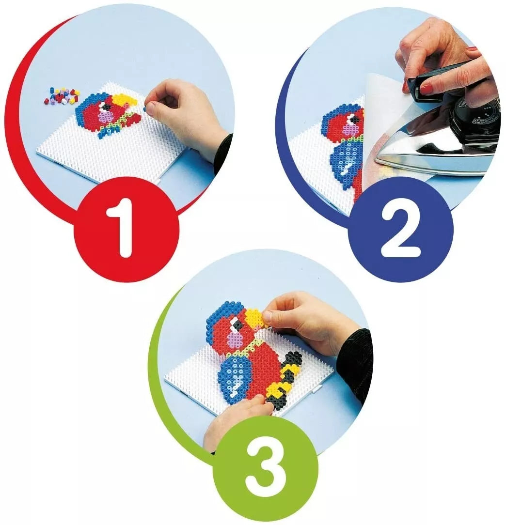 Hama kūrybinis rinkinys su gražia rausva dėžute - ne tik smagus ir įtraukiantis, bet ir patogus keliaujant užsiėmimas. Su daugiau nei 2000 karoliukų, specialiais Hama blizgučiais ir galybe idėjų dizainų gide, galėsite sukurti pačius įvairiausius kūrinius. Nuo papuošalų iki jūros arkliukų ir kitų mielų kūrinėlių - su Hama galimybės neribotos. Vieno karoliuko diametras 5 mm