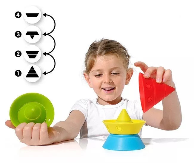 Hix Miksas tai naujos konstrukcijos žaislas, susidedantis iš keturių, skirtingų spalvų, lanksčių kūgių, pagamintų iš elastinės silikoninės gumos. Kiekvienas jų transformuojasi į keturias kitas formas, iš kurių, pasitelkus vaizduotę, galima kurti įvairias konstrukcijas. O kai reikia tinka ir augančius dantukus pakasyti:)