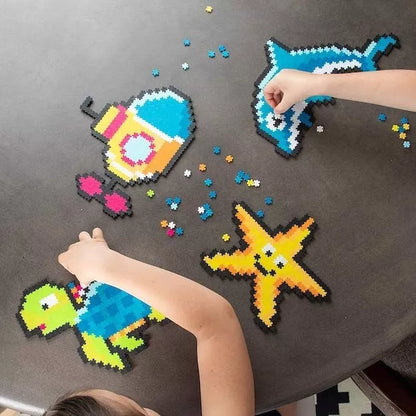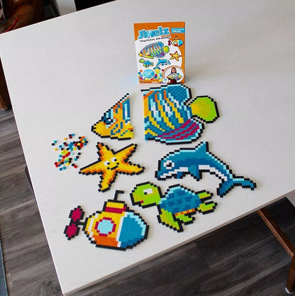 Klasikinis dėlionių džiaugsmas tampa tikru pikselių kūrybiškumo nuotykiu. Kiekvienas rinkinys turi 1500 ryškių, preciziškai išpjaustytų dėlionės detalių. Sekdami šablonais transformuokite mažytes pikselinės dėlionės detalės į keturis mini projektus arba vieną didžiulį paveikslą. Su šiuo Povandeninio pasaulio rinkiniu galėsite sukurti delfiną, jūrų žvaigždę, jūrų vėžliuką ir povandeninį laivą arba milžinišką tropinę žuvį. O jei norėsite, pasitelkę kūrybiškumą galėsite sukurti savo unikalius dizainus. Visos Jixelz detalės puikiai tinka viena su kita, o sudėtos tvirtai laikosi. Skatina smulkiuosius motorinius įgūdžius, erdvinį aiškinimą, kūrybiškumą, planavimo įgūdžius.