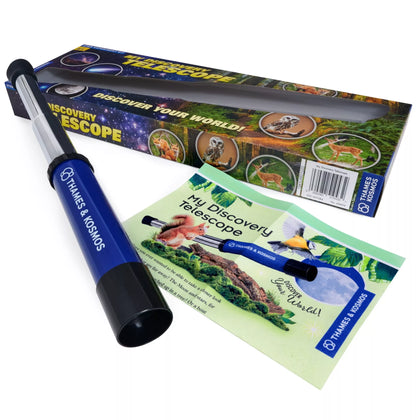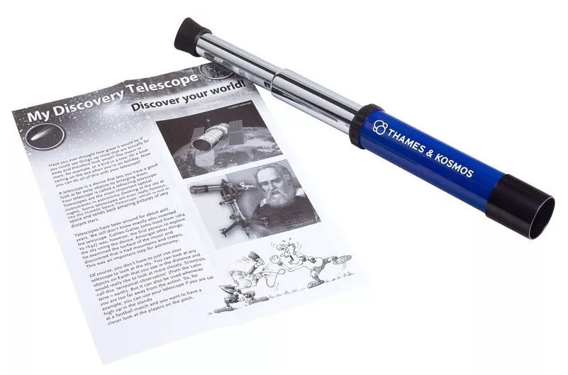 Šis pradedantiesiems tinkamas teleskopas turi 12 kartų didinančią optiką ir paminkštintą akies lęšio dangtelį Jūsų patogumui ir komfortui. Jaunieji tyrėjai turi galimybę naktį žiūrėti į žvaigždes, stebėti laukinę gamtą arba tapti jūroje plaukiojančiais piratais. Kaip ir kiti Thames and Kosmos rinkiniai, taip ir šis aukštos kokybės rinkinys užtikrina mokslinių žinių ir smagumo balansą.