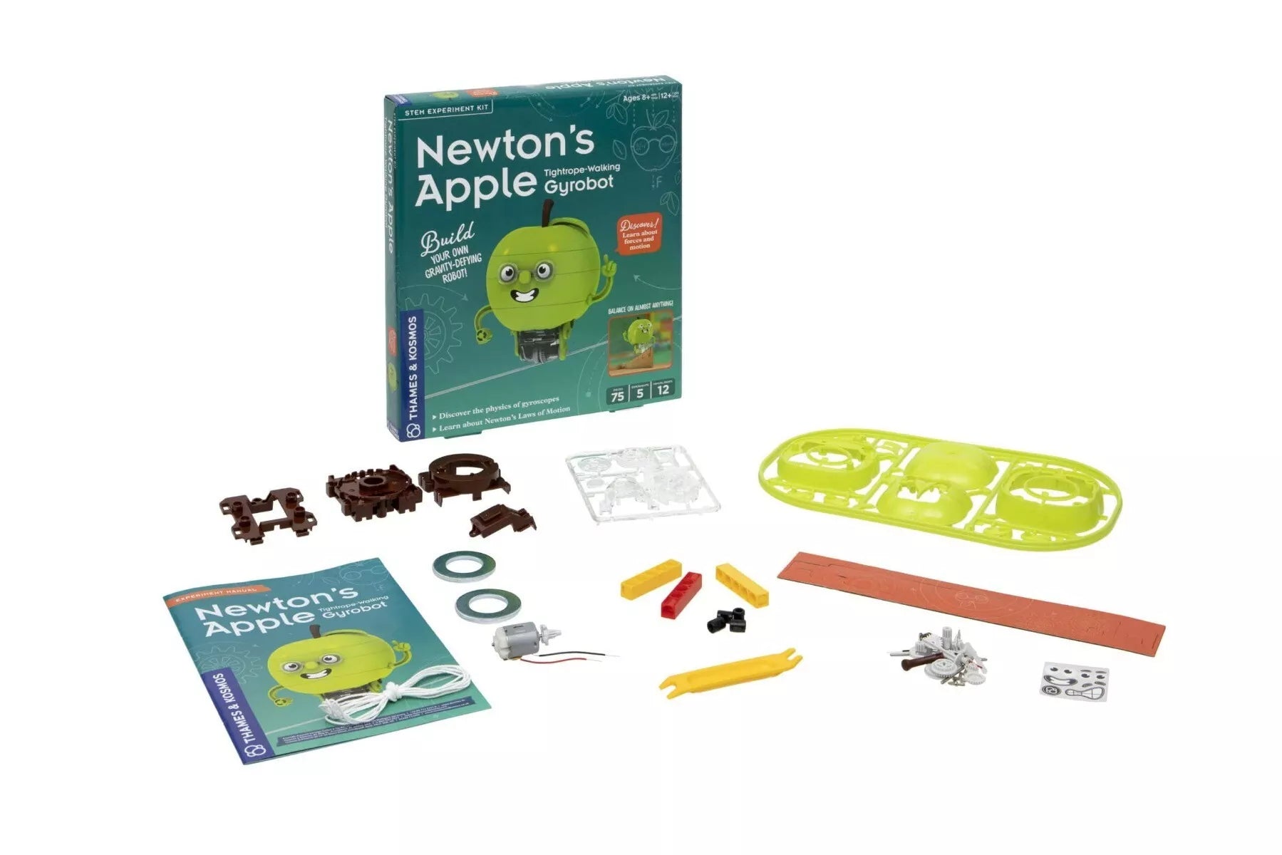 Mokslinis rinkinys NIUTONO OBUOLYS demonstruoja neįtikėtiną pasaulį, kuriame obuolys gali nepaisyti gravitacijos dėsnio ir vaikščioti lynu, o visa tai įmanoma dėka motorizuoto giroskopo magijos. Įsivaizduokime, kaip IZAOKAS NIUTONAS būtų nustebęs pamatęs tokį stebuklingą obuolį, kuris išlaiko pusiausvyrą ir nenukrenta.