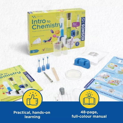 Atlikite 27 klasikinius eksperimentus, kurie padės suprasti fundamentalius chemijos dėsnius. Išmokite naudotis baziniais chemijos įrankiais, pasigaminkite gipsinį mėgintuvėlių stovą, tyrinėkite dažų sudėtį atliekant chromatografijos bandymus, kur spalvos magiškai atsiskiria viena nuo kitos. Stebėkite, kaip rūgštys ir bazės tirpdo kriaukles, gesina žvakes ir atraskite nematomą anglies dioksido dujų galią! Viskas, ko reikia sėkmingiems ir saugiems bandymams, yra išsamioje 48 puslapių spalvotoje instrukcijų knygoje.