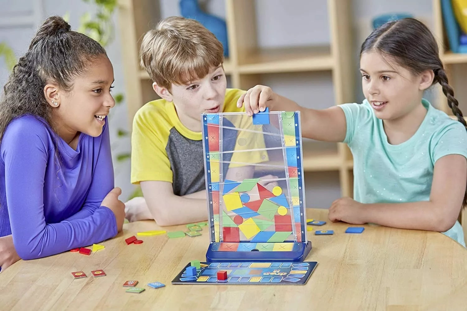 Šis spalvingas, išradingas žaidimas šeimai yra lengvai išmokstamas, tačiau kartu protu nesuvokiamas! Vienas po kito, kiekvienas žaidėjas meta figūrėlę į specialią vertikalią žaidimo lentos zoną. Žaidėjai gauna taškus už aukščiausią jų figūrėlės pasiektą lygį bei papildomus taškus, jei figūrėlė paliečia specialius taškų apskritimus. Tačiau būkite atsargūs - nepažeiskite nusileidimo taisyklės! Figūra, kurią paleidžiate, nusileidusi negali paliesti tos pačios spalvos ar formos figūros. Jei sulaužote nusileidimo taisyklę, prarandate taškus. Laimi žaidėjas arba komanda, žaidimo pabaigoje surinkusi daugiausia taškų.