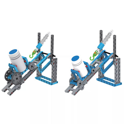 Pasinaudokite šiuo rinkinius ir pagilinkite savo mechaninės fizikos žinias. Išmokite viską apie paprastus mechanizmus ir tai, kaip juos naudojant supaprastinti sudėtingas užduotis. Atlikdami 26 modelių konstravimo pratimus ištirsite visus šešis klasikinius paprastuosius mechanizmus - ratus ir ašis, svirtis, skriemulius, pasvirusias plokštumas, varžtus ir pleištus bei pavaras. Pradėkite nuo paprastų modelių, kurie suteiks tvirtą supratimą apie pagrindinius veikiančius principus, o tuomet pereikite prie didesnių, sudėtingesnių modelių, leisiančių ištirti sudėtingesnes mašinų galimybes ir pamatyti, kaip jos gali veikti kartu. Taip pat rinkinyje yra specialiai suprojektuota spyruoklinė skalė, su kuria galėsite pamatuoti, kaip mechanizmai keičia kryptį ir nustatyti jėgų, padedančių lengviau atlikti darbą, dydžius. Su šia patvaria, moduline konstravimo sistema, galite pamatyti, kaip tie patys pagrindiniai elementai susijungia skirtingais būdais ir suformuoja kiekvieną iš mechanizmų. Modeliai gali būti surenkami ir išrenkami vėl ir vėl, o detalės gali būti sujungiamos kartu sukuriant Jūsų pačių unikalias ir beribes kombinacijas - tereikia tik vaizduotės! Be neįkainojamos praktinės patirties, kurios įgausite statydami modelius, spalvotas, 32 puslapių gidas taip pat supažindins su paprastųjų mechanizmų veikimo ir pritaikymo pavyzdžiais kasdieniame gyvenime. Supimosi lenta žaidimo aikštelėje, karutis sode, vėliavos stiebas priešais Jūsų mokyklą - visa tai yra paprastųjų mechanizmų pavyzdžiai realiame pasaulyje! Tad pradėkite statyti, tyrinėti ir eksperimentuoti norėdami atrasti visur mus supančią fiziką!