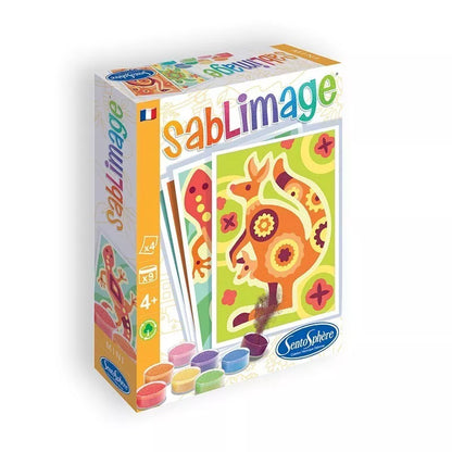 Tiesiog nulupkite iš anksto užklijuotas paviršiaus dalis ir apibarstykite jas siūlomu smėliu. Spalva po spalvos, kiekvienas paveikslėlis atgyja ir tampa tikru šedevru! Nuostabus rezultatas garantuotas menininkams visų amžių.
