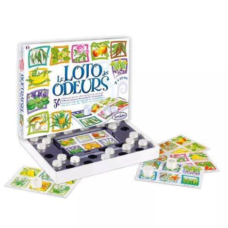 FRAGRANT LOTTO (KVAPNUSIS LOTO) - tai puiki edukacinių žaidimų klasika. Jo sudėtyje net 30 difuzorių su vaisių, gėlių ar buitinių kvapų aromatais. Šis žaidimas praturtins tėvų ir vaikų bendravimą bei atvers netikėtų perspektyvų pasaulį. 30 aromatų: abrikosų, ananasų, bananų, sausainių, juodųjų serbentų, citrinų, grybų, sausmedžio, apelsinų žiedų, pankolio, kūrenamų malkų, braškių, eukalipto, žolės, levandų, mėtų, apelsinų, jūros, melionų, medaus, pakalnučių, riešutų, greipfrutų, obuolių, pušų, rožių, muilo, vanilės, našlaičių.