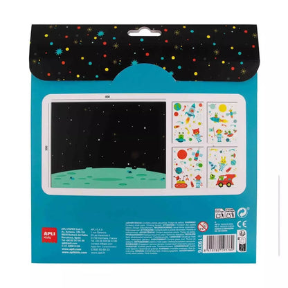 Leiskitės į nuotykius po kosmoso platybes su šiuo daugkartinių lipdukų rinkiniu! Tai puiki kūrybinė veikla, kuri ne tik lavina, bet ir suteikia begalinę laisvę vaiko fantazijai. Rinkinį sudaro didelė kosmoso scena ir daugybė daugkartinių lipdukų, kuriuos galima klijuoti, nulupti ir perklijuoti vėl ir vėl, kuriant vis naujas istorijas.