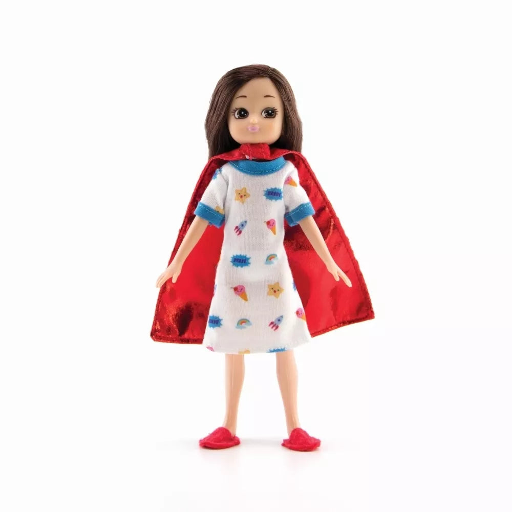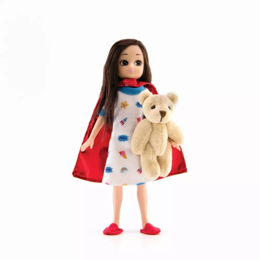 Lottie pasipuošusi su naktinukais, specialiu, super galių priduodančiu apsiaustu, o kad būtų drąsiau, drauge keliauja pliušinis meškiukas Tedis.