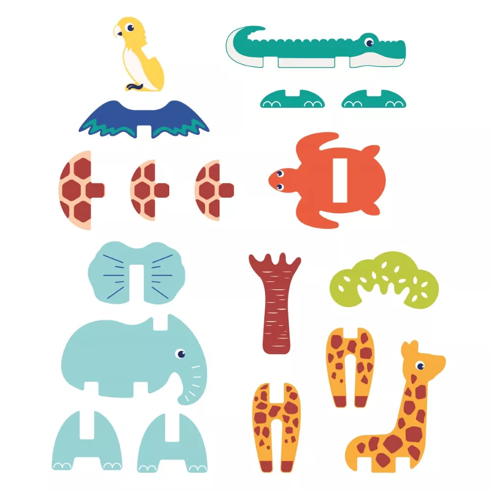 Rinkinyje rasite detales 5 gyvūnėliams ir medžiui sudėti. Detales galima maišyti tarpusavyje ir sukurti dar neregėtus gyvūnus.