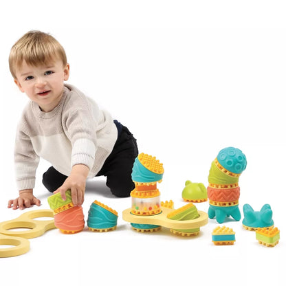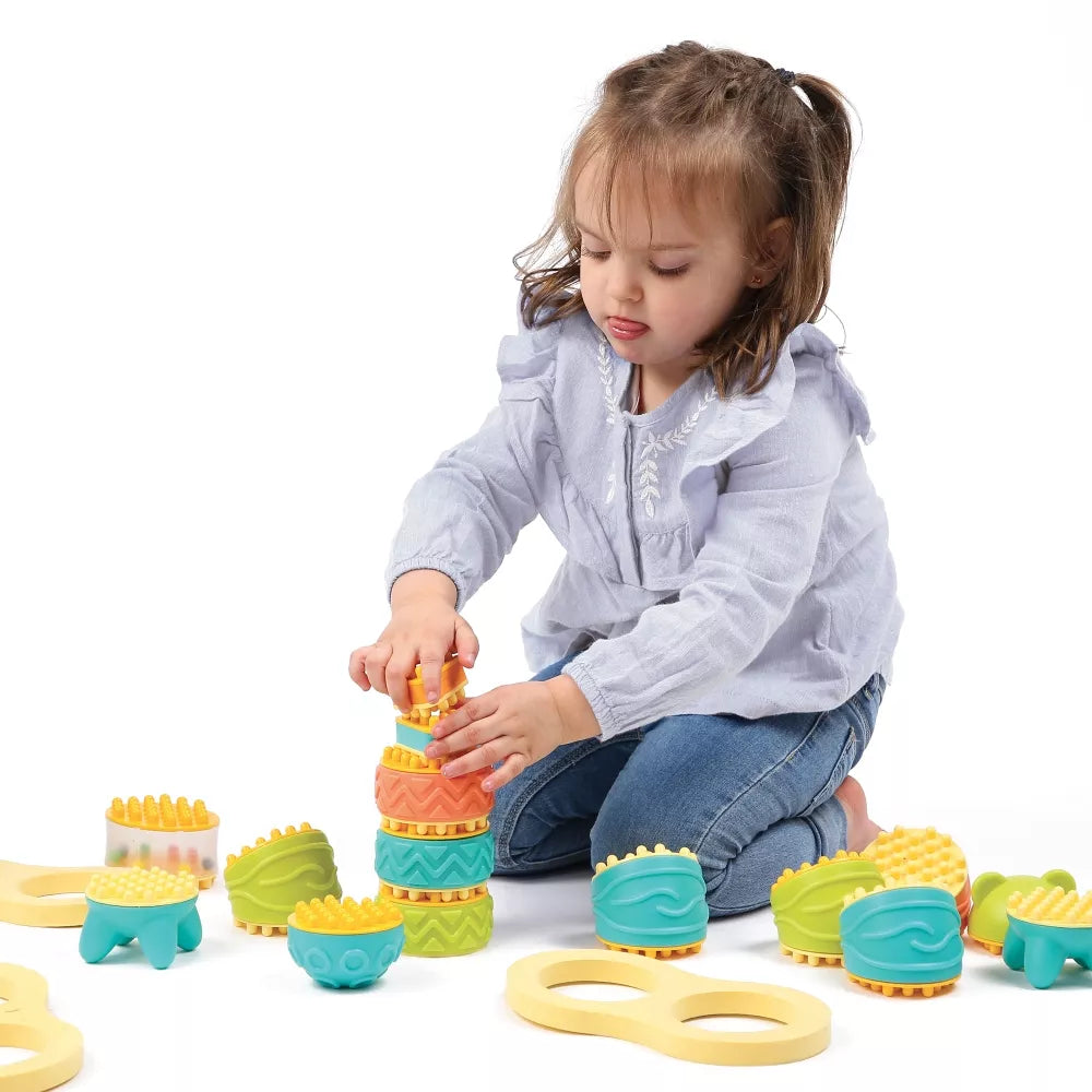 Švelni, skirtingų paviršių tekstūra ir geometrinės formos didina vaiko susidomėjimą.