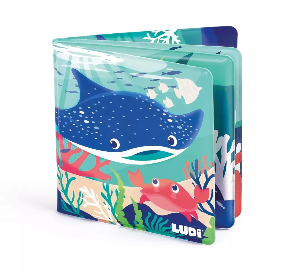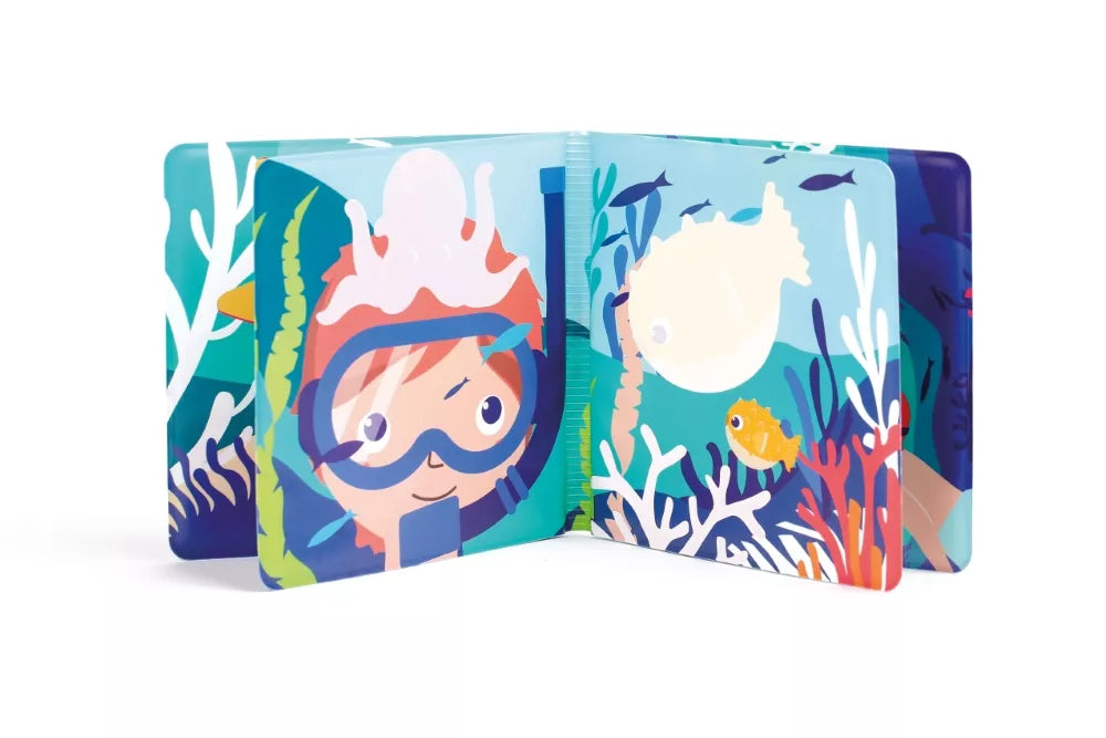 Maudymosi knygelė su mielomis jūros gyvūnėlių iliustracijomis, kurios atsiskleidžia sušlapusios! Kai paveikslėliai išdžiūsta, gyvūnėliai vėl pasislepia.