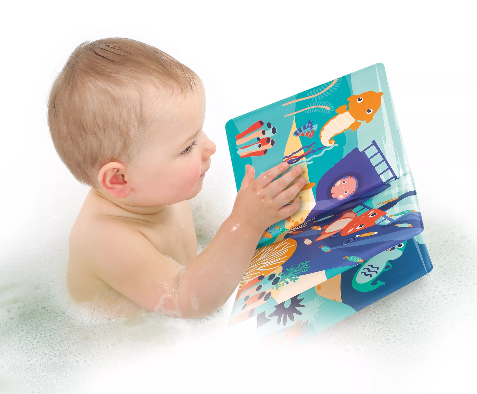 Knygelė pagaminta iš minkšto, vandeniui atsparaus plastiko.