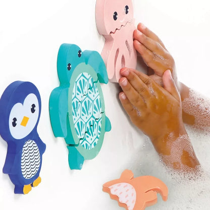 Paverskite maudynes vonioje didžiausiu džiaugsmu! Lengvos dėlionės, kurios sušlapintos prisilipina prie vonios krašto ar plytelių. Nuotaikingos gyvūnėlių formos. Galima pasitelkti vaizduotę ir maišyti dalis kaip norisi!