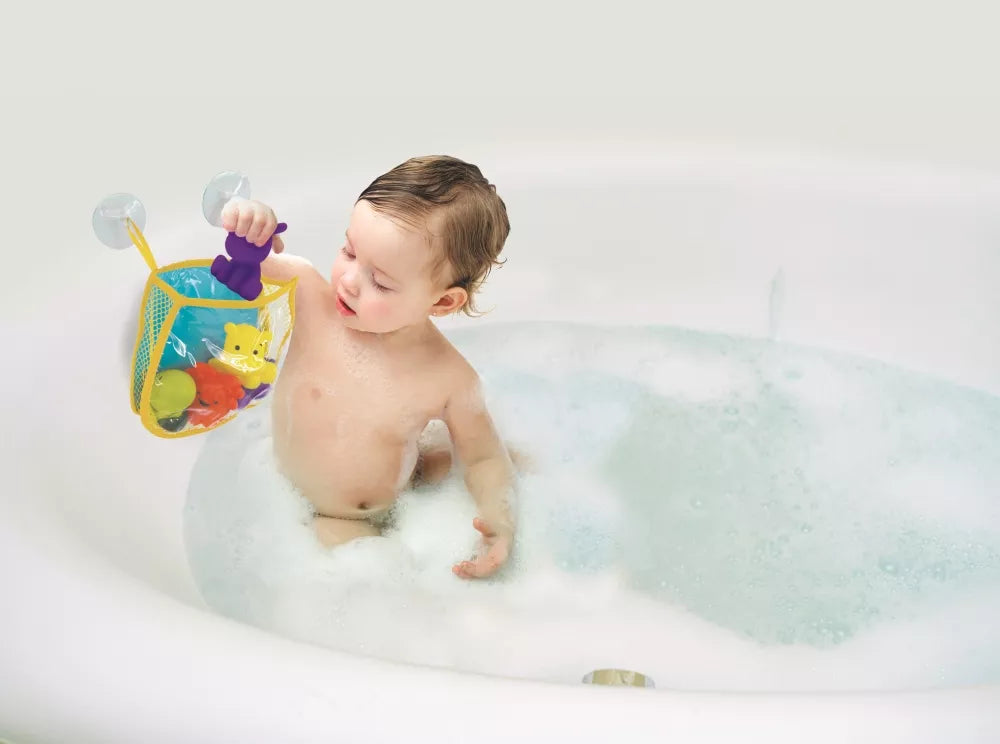 Rinkinyje yra 4 žaisliukai-purkštukai ir su prie vonios tvirtinamas tinklelis, skirtas žaisliukams susidėti.
