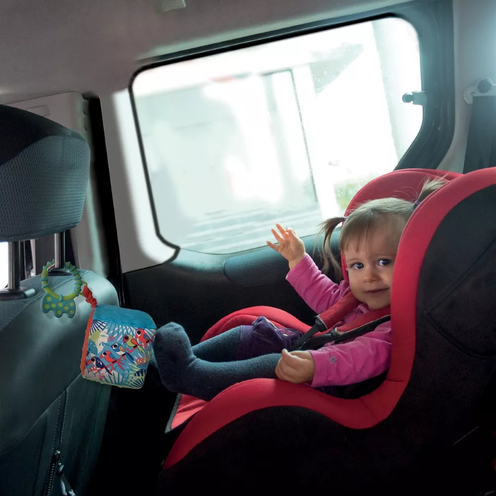 Žaisdamas su spalvingu medžiaginiu kubu mažylis galės susipažinti su įvairiomis tekstūromis.