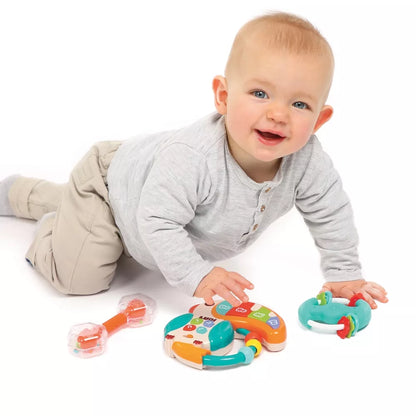 Pianinas turi 4 natas, 4 įrašytas lopšines, 2 garso lygius, 3 plastikinius žiedus ant rankenėlės.