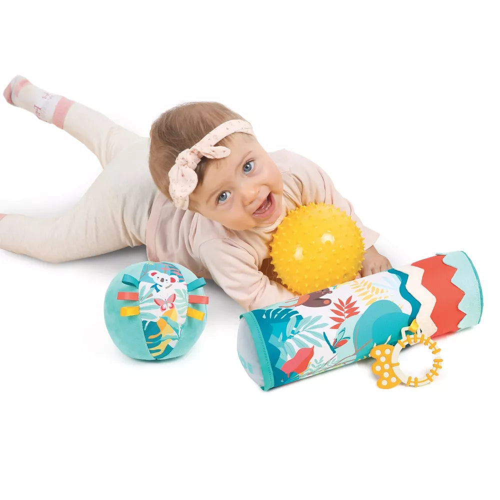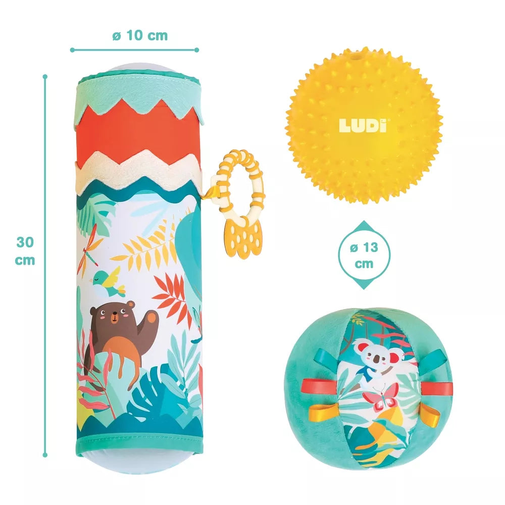 - medžiaginis, traškantis kamuoliukas su įvairiais kaspinėliais, ø13 cm