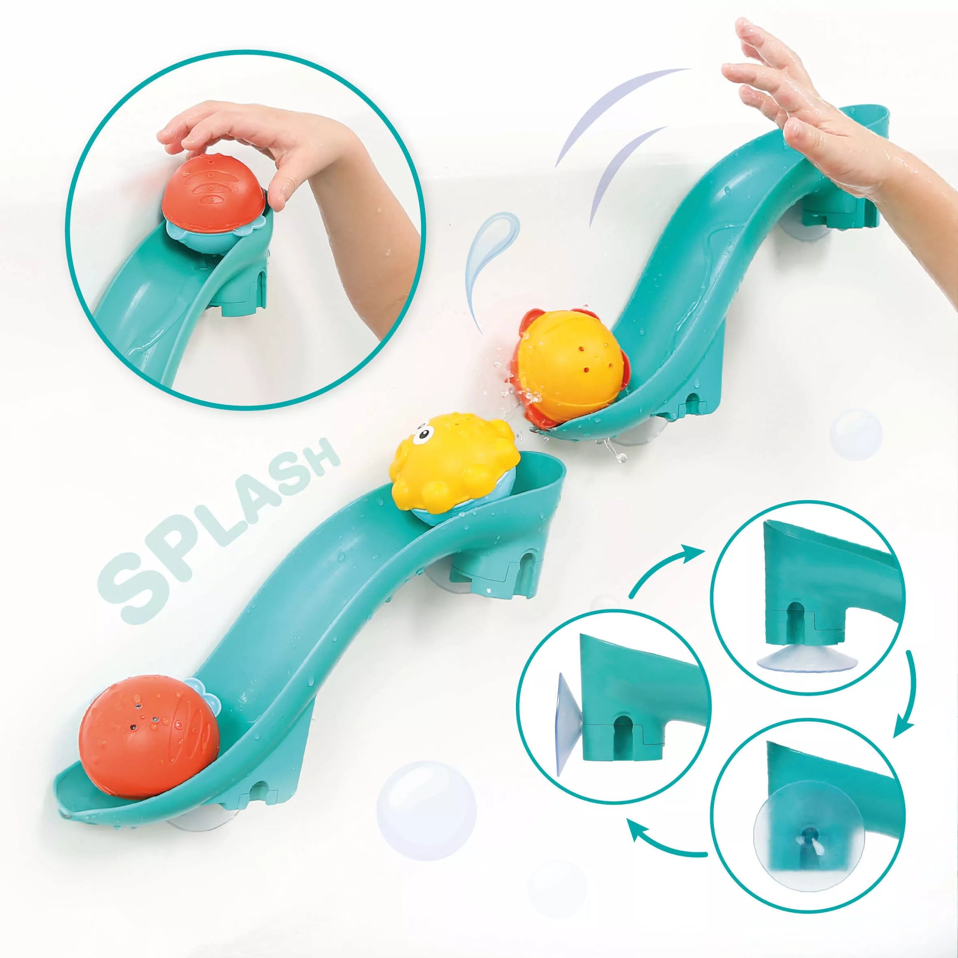 - 2 čiuožyklėlės, kurios siurbtukais tvirtinasi prie sienos ar prie vonios krašto.