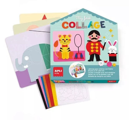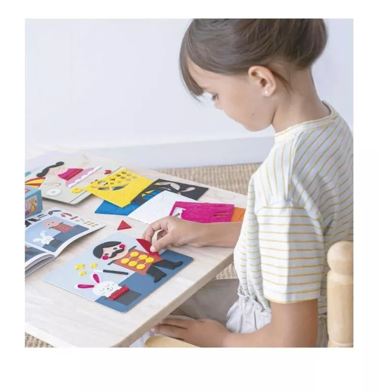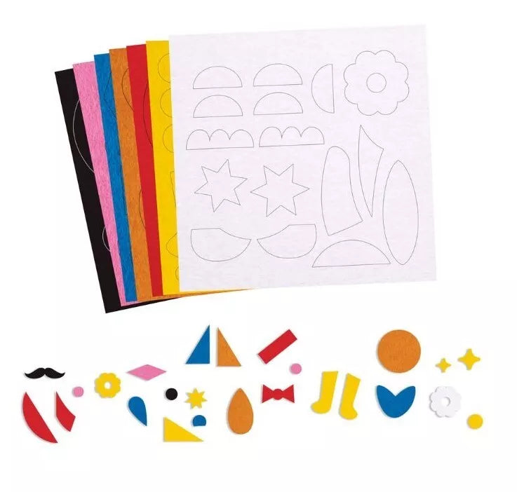 Rinkinyje esantys lipnūs veltinio elementai leidžia vaikui kurti spalvingus koliažus ant 6 iliustruotų kortelių, sekant spalvotais taškeliais kaip vedliu. Minkštos, paruoštos naudoti formelės puikiai tinka mažoms rankytėms – vaikai gali lengvai jas klijuoti, lavindami ne tik kūrybiškumą, bet ir smulkiąją motoriką.