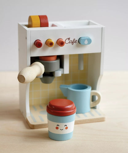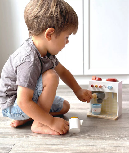 Šį žaismingą kavavirio rinkinį sudaro puodelis kavos išsinešimui, pieno ąsotėlis ir kavos aparatas su 4 spaudomais mygtukais, kavos filtru su rankenėle ir 3 kavos kapsulėmis.
