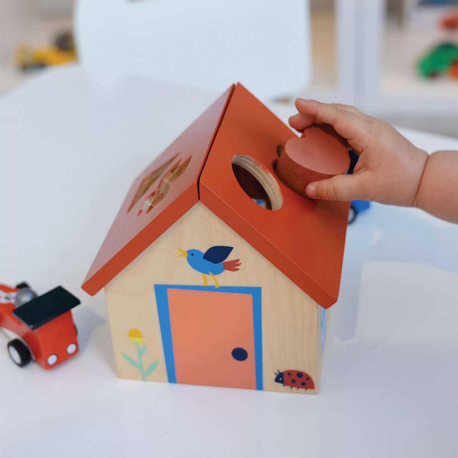 Sudėkite formeles į namelį per atitinkančias skyles jo stogelyje. Iš namelio formeles išimti galima nuėmus namo stogą.