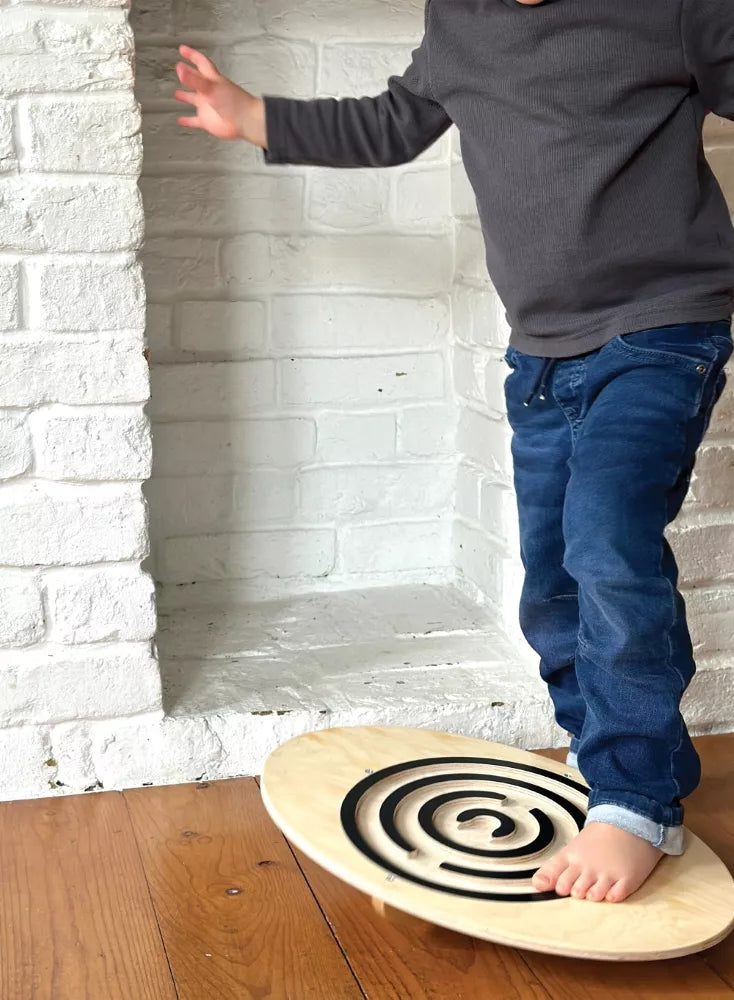 Ši balansinė lenta turi labirintą ir 3 kamuoliukus. Balansuojant stovint ant lentos svarbu išlaikyti kamuoliukus labirinte.