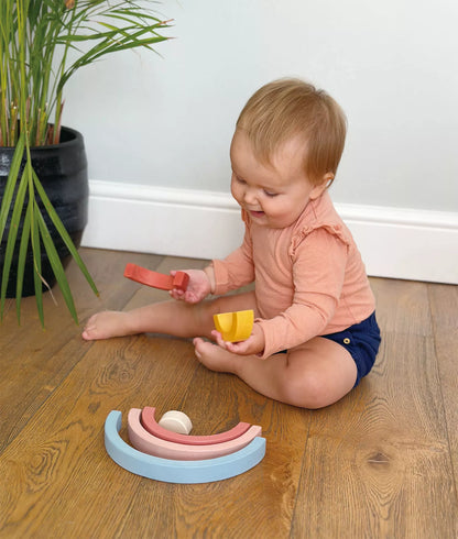 Dėliokite vaivorykštės lankus pagal dydį, sudėkite taip, kad išlaikytų balansą ar dėliokite kaip tiesiog geidžia širdis.