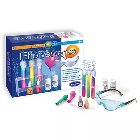 Su FIZZING Mystery per smagius ir paprastus eksperimentus atraskite paslaptingą chemijos pasaulį. Eksperimentai yra įspūdingi ir saugūs: sukurti putojimo reakciją mėgintuvėlyje, išmatuoti vandens pH arba stebėti spalvos pokyčius skystyje.