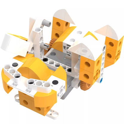 Sukonstruokite aštuonis žavingus, motorizuotus gyvūnėlius-robotukus su šiuo įžanginiu mechaninės inžinerijos rinkiniu vaikams nuo penkerių metų. Gražiai iliustruota, 32 puslapių istorijų knygelė koncentruojasi į Omegų - inžinierių ir kūrėjų šeimynos - nuotykius. Ši istorija kviečia personažus apsilankyti robotukų-naminių gyvūnėlių parduotuvėje, kurioje jie sutinka pačių įvairiausių mielų naminių gyvūnėlių-robotukų, tokių kaip pelėda, prancūzų buldogas, tinginys, panda, chameleonas, katė, vėžliukas ir triušiukas. Sekdami istorija vaikai gali sukonstruoti šių robotukų modelius ir jais eksperimentuoti bei pamatyti, kiek kiekvienam iš jų sukonstruoti reikalinga baterija varomo motoro ir mechaninių dalių tam, kad galėtų judėti skirtingomis kryptimis. Didelės plastikinės statymo detalės padeda mažoms rankutėms patogiai konstruoti modelius. Robot Pet Shop - tai įtraukiantis ir įdomus būdas mokytis paprastų inžinerijos sąvokų, suteikiančių pagrindą stipriems, su STEM įgūdžiais susijusiems, gebėjimams ir suvokimui jau nuo ankstyvo amžiaus. Modelių konstravimas ir eksperimentavimas vysto smulkiuosius motorikos įgūdžius, mechaninės inžinerijos, erdvinio suvokimo, aiškinimo bei sąvokų vystymo gebėjimus.