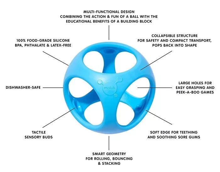 Tai - elastingas, sulankstomas, suspaudžiamas, lengvai suimamas sensorinis žaislas kūdikiams ir įvairaus amžiaus vaikams! „Oibo“ kramtukai veikia statybinio blokelio principu ir sujungia sferą su 3 colių kubu, tokiu būdu suderindami kamuoliuko suteikiamą pramogą su statymo blokelio siūlomais edukaciniais privalumais.