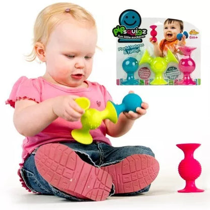 Pristatome tobulą žaislą, išlaikantį kūdikio dėmesį! Kas nutinka, kai mažyliai susiduria su žaismingomis spalvomis, smagiais garsais, naujomis lytėjimo patirtimis ir super-siurbtukais? Atsakymas – „pipSquigz“!