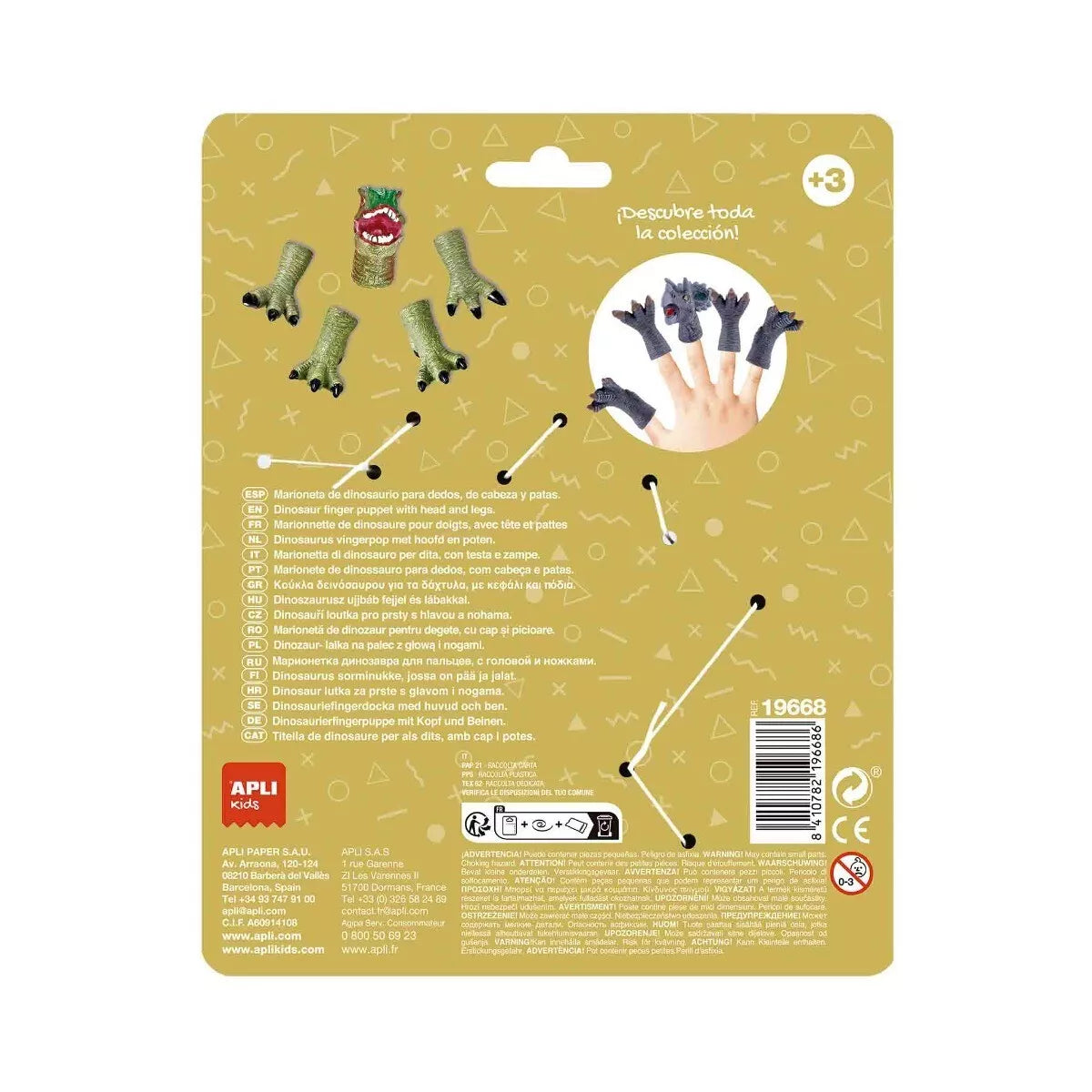 Draugiškas Treksas apsigyvens ant jūsų pirščiukų. Tai puiku priemonė mokytis per žaidimą. Įgarsinkite dinozaurą, tegu jis kalba, riaumoja ir dainuoja. Pirštų lėlės atvers vaiko fantaziją, lavins vaizduotę, skatins gebėjimą susikaupti, padės išreikšti emocijas. Kadangi užima mažai vietos, jas galėsite pasiimti su savimi eidami į svečius, iškylas, pasivaikščiojimus ar žaisti maudynių metu.