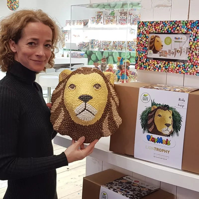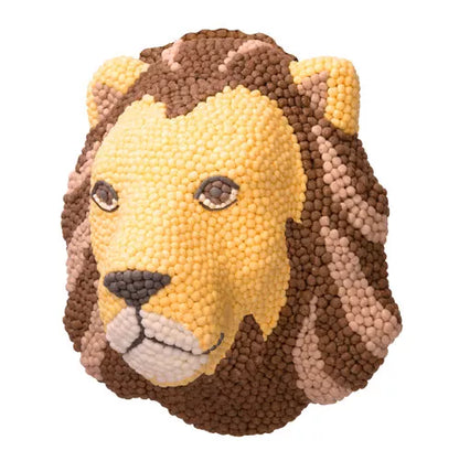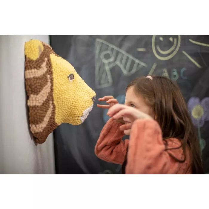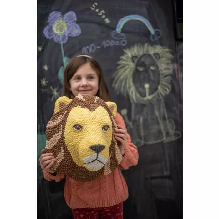 - Viduje yra liūto galvos maketas, instrukcijos, kempinėlė