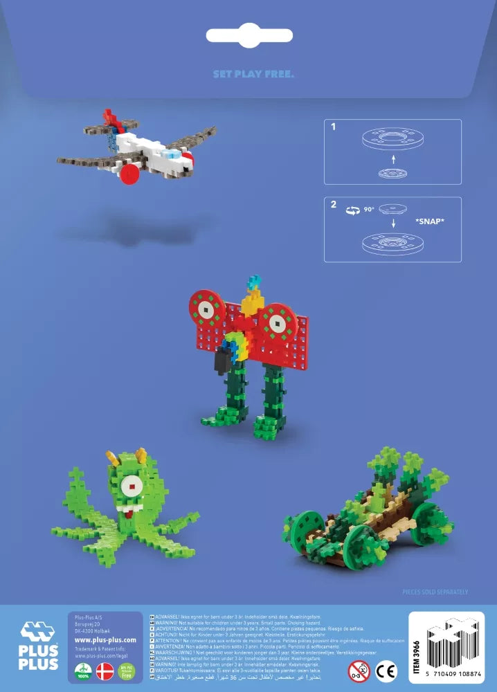 Su Plus Plus mėgsta žaisti tiek maži, tiek dideli. Nuo visiškai laisvos kūrybos iki žaidimo pagal instrukcijas. Nuo paprastų formų ir mozaikų iki sudėtingų 3D darbelių. Plus Plus lavina vaizduotę, kūrybiškumą bei smulkiąją motoriką. Plus Plus - viena forma, neribotos galimybės!