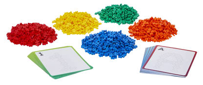 - 40 dvipusių kortelių su skaičių ir raidžių maketais.