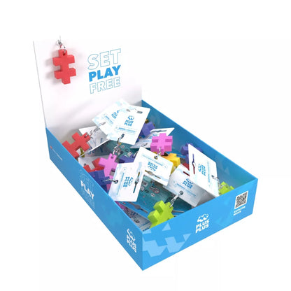Pridėkite spalvingą akcentą ir žiupsnelį kūrybingumo prie savo rankinės, kuprinės, raktų ar bet kur kitur! Ikoniška Plus Plus forma dabar gali būti ir raktų pakabukas!