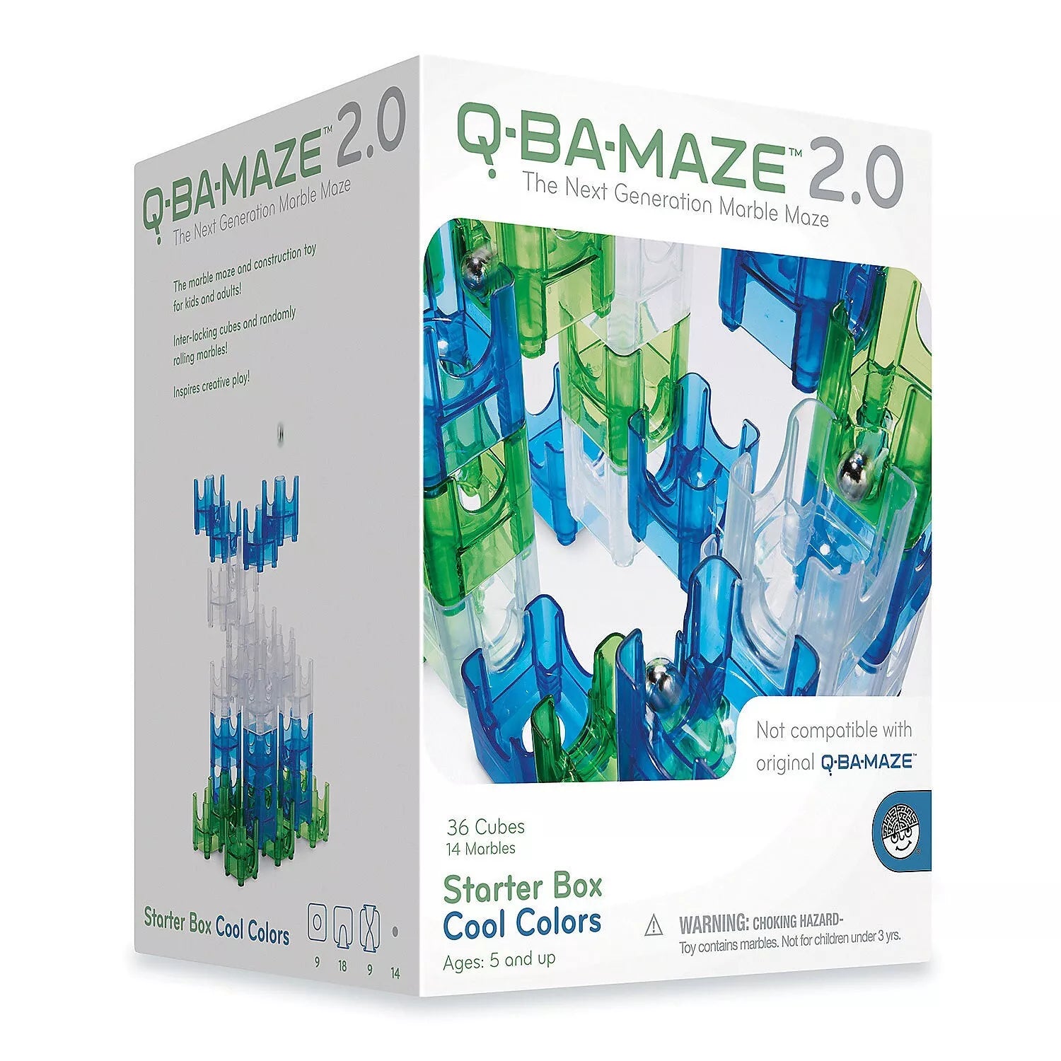 Q-BA-MAZE 2.0 STARTER unikali spalvotų kubelių, kurie vienas su kitu lengvai ir netikėtai tvirtinasi bei sukuria smagią rutuliukų ridenimo trasą, sistema. Kuo šis labirintų konstruktorius skiriasi? Iš šių kubelių galite sukurti pačių įvairiausių formų ridenimo labirintus: tai gali būti gyvūnas, geometrinė figūra ar bet kokia kita jūsu sukurta skulptūra! Variantų skaičius yra beribis, o tai neleidžia lengvai nuspėti, kuriais maršrutais keliaus plieno rutuliukai. Tai gyva ir linksma tikimybių teorijos, fizikos ir meno demonstracija, viskas viename! Uhuu, tra ta ta ta...kur rieda rutuliukai;)? O kokia trasos forma? Kiekvieną kartą vis kitokia, kokią sukuria jūsų vaizduotė;)