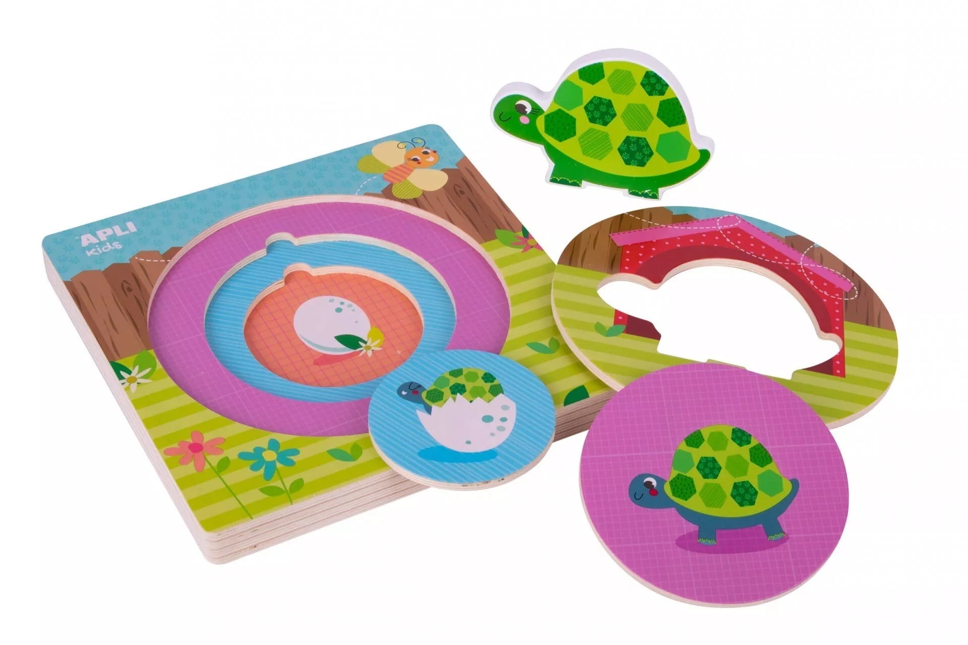 „Vėžliukas” yra medinė, spalvinga, apvali dėlionė, sudaryta iš 3 skirtingų sluoksnių, reprezentuojančių gyvenimo ratą. Ketvirtasis ir paskutinysis sluoksnis - tai medinė vėžliuko formos detalė, su kuria vaikai gali žaisti. Šios dėlionės tikslas yra išmokyti vaikus atskirti, atpažinti ir atitaikius įdėti kiekvieną detalę į jai skirtą vietą. Toks žaidimas turi aukštą didaktinę reikšmę, vysto smulkiąją rankų motoriką, moko skirti spalvas, vystyti loginį mąstymą ir vizualinį erdvės suvokimą.