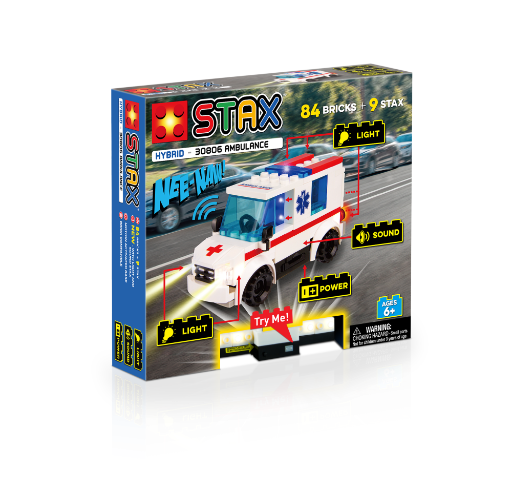 STAX Hybrid turi garso ir šviesos efektą. Aktyvuojamas 5 sekundėms, kiekvieną kartą, kai konstruotojas jas pajudina.