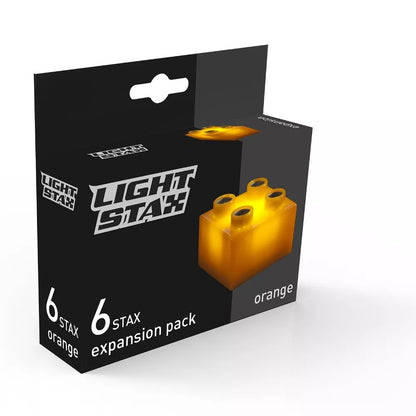 - 6 oranžinės spalvos šviečiančios 2x2 STAX Junior kaladėlės