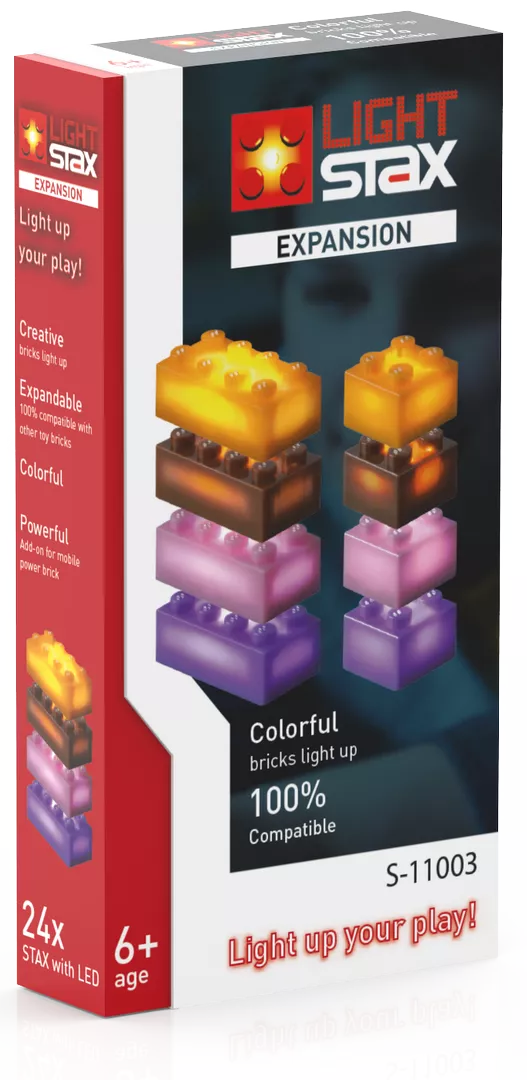 STAX System konstruktoriai skirti įvairaus amžiaus vaikams ir gali būti naudojami statant išskirtinius šviečiančius kūrinius ar tiesiog apšviesti Jūsų turimą kaladėlių kolekciją.