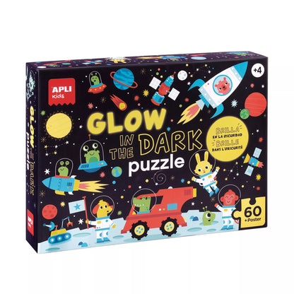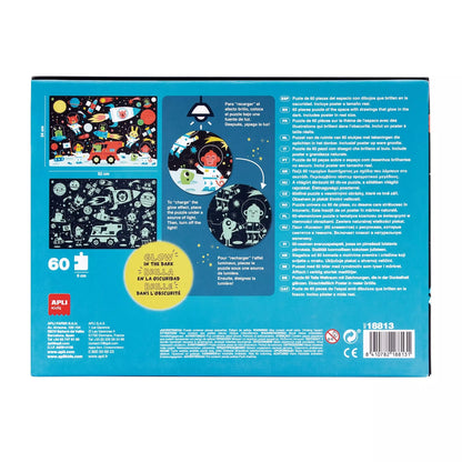 Dėžutės viduje rasite tikro dėlionės dydžio plakatą, kuris palengvins dėlionės sudėjimą. Surinkę dėlionę, ją apšvieskite stipriu šviesos šaltiniu ir po 30 minučių tamsoje galėsite matyti švytinčias planetas, žvaigždes ir gyvūnus astronautus.
