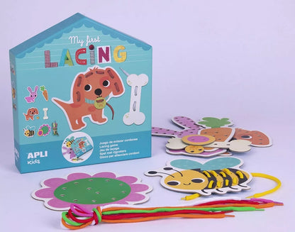 Tai - įdomus žaidimas, kurio tikslas sunerti/sujungti gyvūnus ir vabzdžius su jų maistu. Rinkinyje yra 8 XL dydžio skirtingų formų gyvūnus vaizduojančios kortelės su skylutėmis ir 6 spalvoti raišteliai. Žaisdami vaikai vysto savo smulkiosios motorikos įgūdžius ir rankų-akių koordinaciją, o tuo pat metu skatina kūrybiškumą ir vaizduotę.